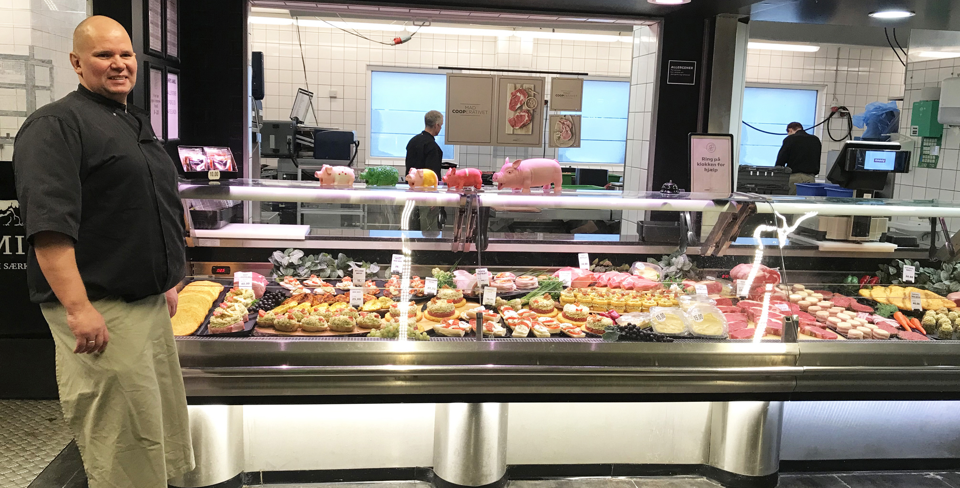 Udover profilvarer Premium oksekød, dansk kalvekød, Frisengård kylling og Bornholmer gris og en lang række andre slagtervarer, så fremstiller Allan og hans team også et stort udvalg af convenience foods - deres egne færdigretter, som er klar-til-ovn. De bliver pakket, anrettet pænt i bakker med låg, som derefter vejes og prismærkes, inden de placeres i køledisken.