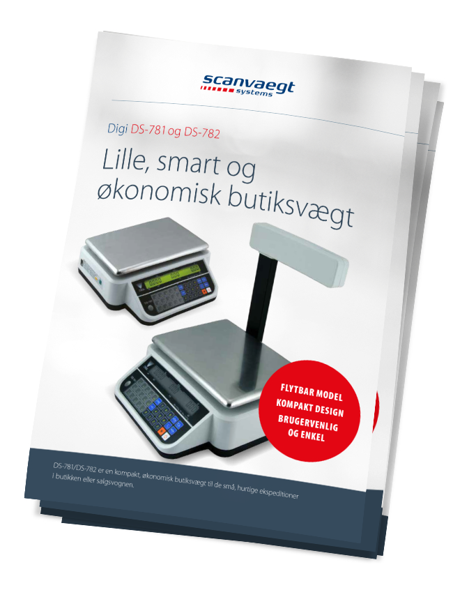 Der kan tareres for emballagevægt. DS-781 og DS-782 kan køre på batteri eller tilsluttes el-net. De er ultra-lette og har en lille kompakt størrelse, der gør dem nemme at håndtere, f.eks. i en salgsvogn.