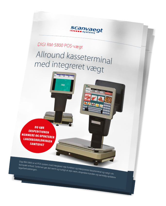 Digi RM-5800 er et POS-system med integreret veje-funktion og inkorporerer kasseteminal og vægt i én kompakt enhed. Vægt-delen er en elegant, lav-profil vægtplatform med vejekapacitetet på hhv. 3/6 kg, 6/15 kg og 15/30kg.