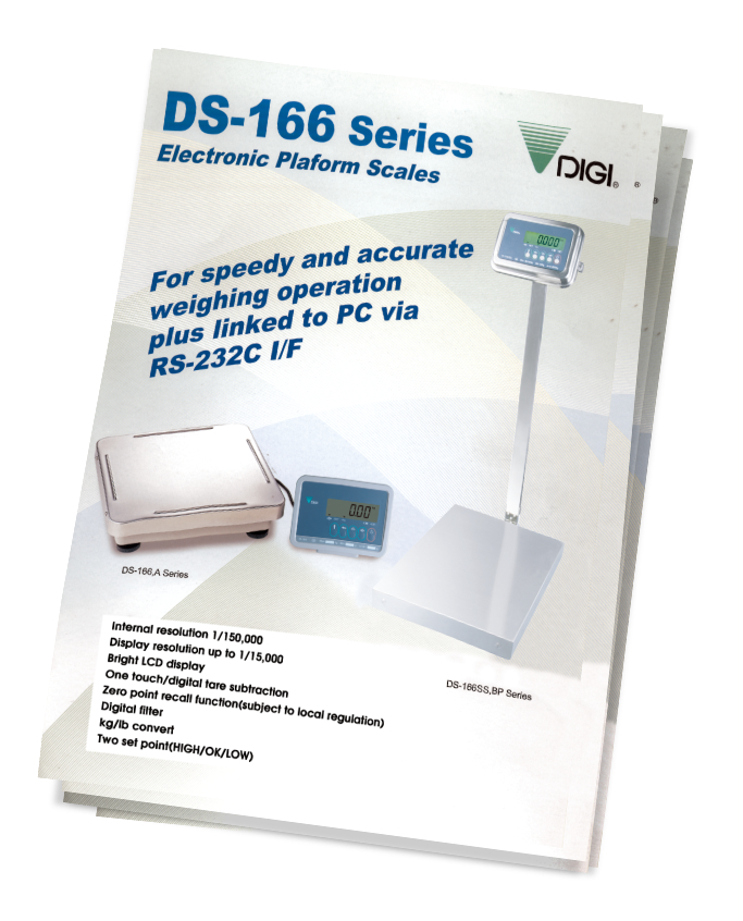 DIGI DS166 er en hurtig og enkel kontrolvægt, som fås med vægt-indikatoren monteret på søjle, på vægt-underpart en eller løs for fri placering.