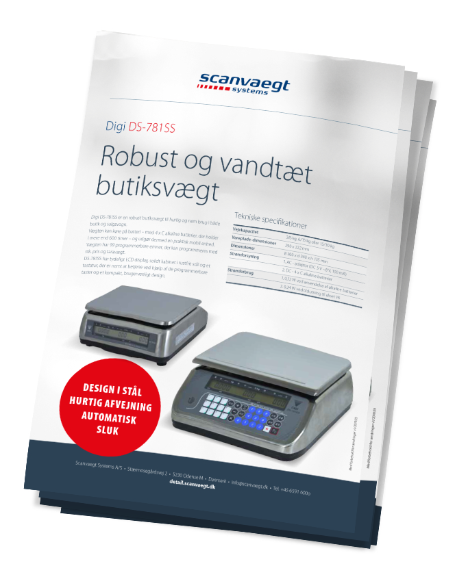 DIGI DS-781SS er en robust butiksvægt til hurtig og nem brug i både butik og salgsvogn. Vægten kan køre på batteri og udgør en praktisk mobil enhed.