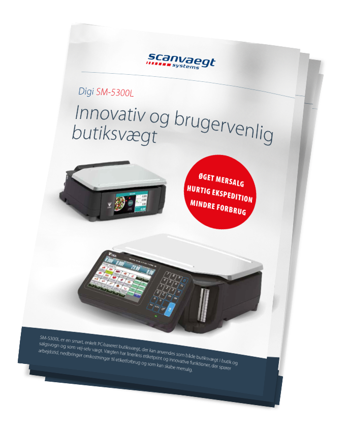 DIGI SM-5300L VS er en flot, brugervenlig vej-selv vægt, der reducerer etiketforbrug og sparer tid til etiketrulleskift i frugt & grønt afdelingen, slik-afdelingen og i gårdbutikken.