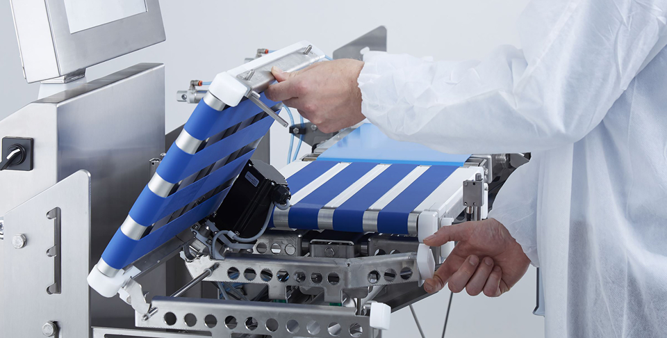 Checkvejerens konstruktion med de skrånende overflader, helsvejsede samlinger, hygiejniske kabelføringer og det enkle, åbne HACCP-godkendte design forhindrer ansamling af skidt og bakterier og letter rengøring.