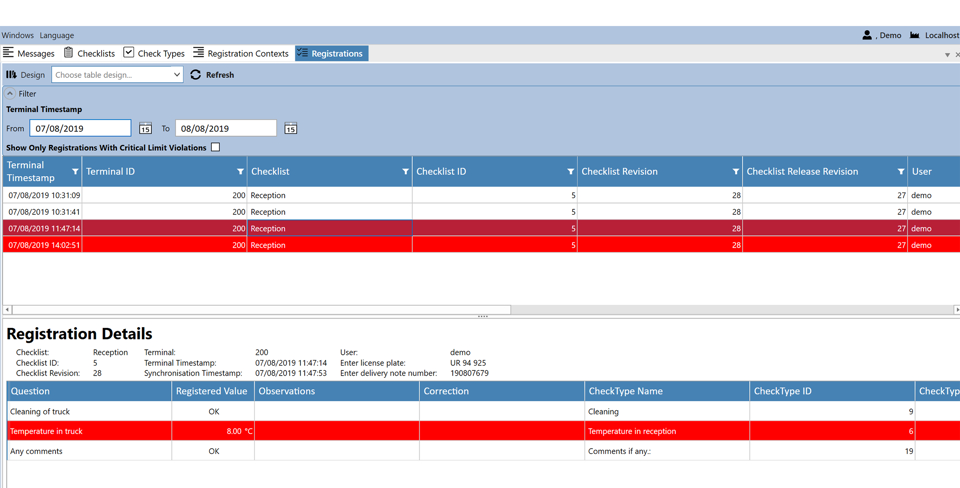 Afhængigt af kundens ønsker og behov samles kvalitetsregistreringer i opsummeringer og rapporter, som i ScanPlant NG Office giver et hurtig overblik over dokumentationen sammen med den interne inspektion.