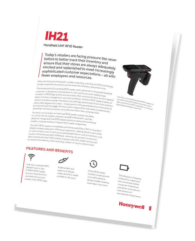 Mange ser mod Honeywells mobile computere, scannere og RFID-teknologi for at effektivisere processerne og øge deres produktivitet og effektivitet. Vi introducerer Honeywell IH21, en håndholdt UHF RFID-læser designet til at levere hurtig og højvolumen læsning af RFID-tags til applikationer såsom lageroptælling i detailhandlen, omni-channel ordreopfyldelse, modtagelse af varer, genopfyldning af hylder samt pluklistestyring.