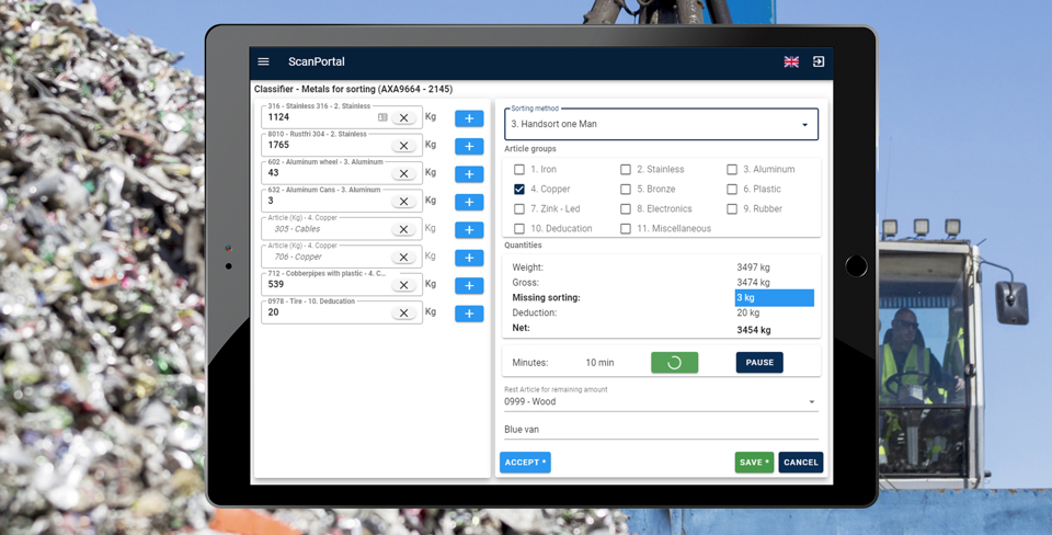 I ScanClassifier angives de sorterede genbrugsmaterialer, der kommer ind på modtageranlægget, og opdeles iht. alle krav og regulativer. Samtidigt registreres den rette værdi for materialet, så leverandøren, afregnes med den rette pris for materialerne.