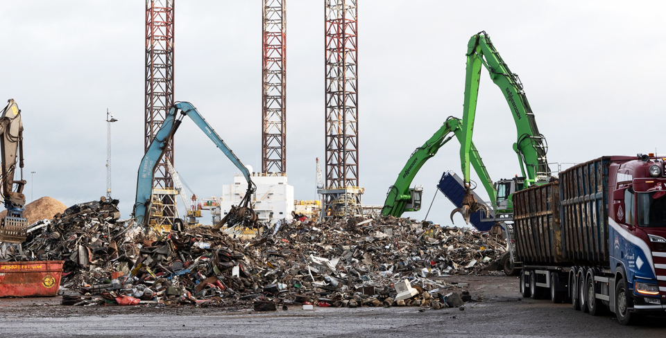 - Køretøjet afleverer assorterede genstande til klassificering, hvilket giver en startvægt for den samlede materialeleverance