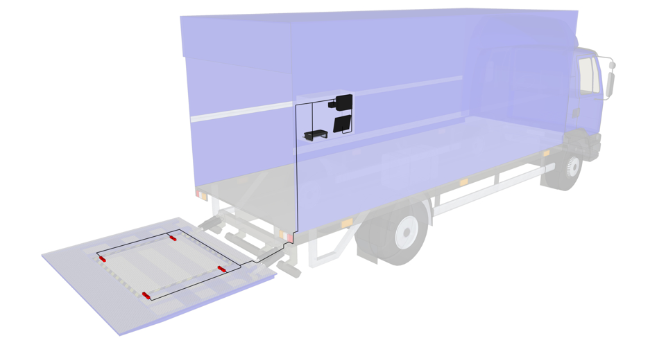 Systemet består af en robust platformsvægt, der integreres i bagsmækliften og kobles til en førerhus-computer til registrering og kommunikation via mobilnettet.