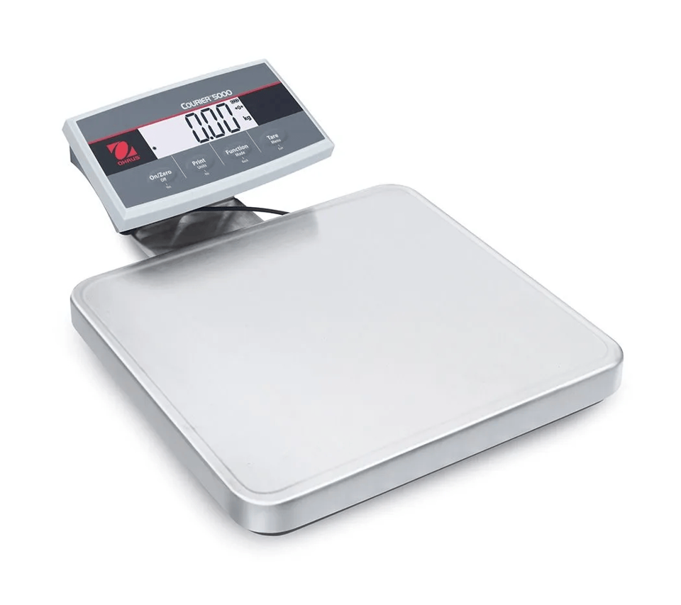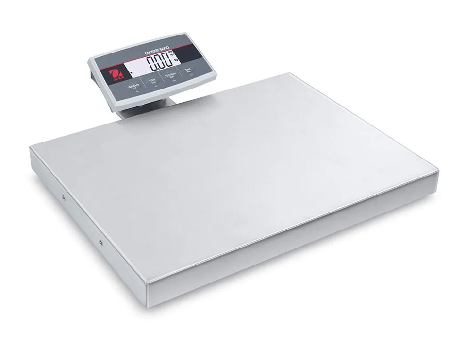 OHAUS Courier 5000-serien er designet til at håndtere daglige vejeopgaver i både forsendelses- og veterinærmiljøer. Den robuste konstruktion med pulverlakeret stålramme og en vejeplade i rustfrit stål gør vægten slidstærk, hygiejnisk og nem at rengøre – ideel til både pakker og mindre dyr.