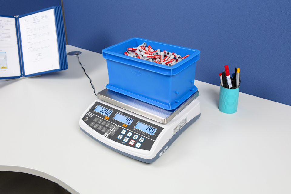Den er udstyret med hukommelse til 100 varer (PLU), inkl. tekst, referencevægt og tara-vægt, hvilket gør det muligt hurtigt at skifte mellem forskellige artikler. Tre separate displays viser vægt, referencevægt og total antal styk, så brugeren altid har det fulde overblik. Desuden kan man via det numeriske tastatur programmere både referenceantal og kendt referencevægt, hvilket giver stor fleksibilitet i arbejdet.