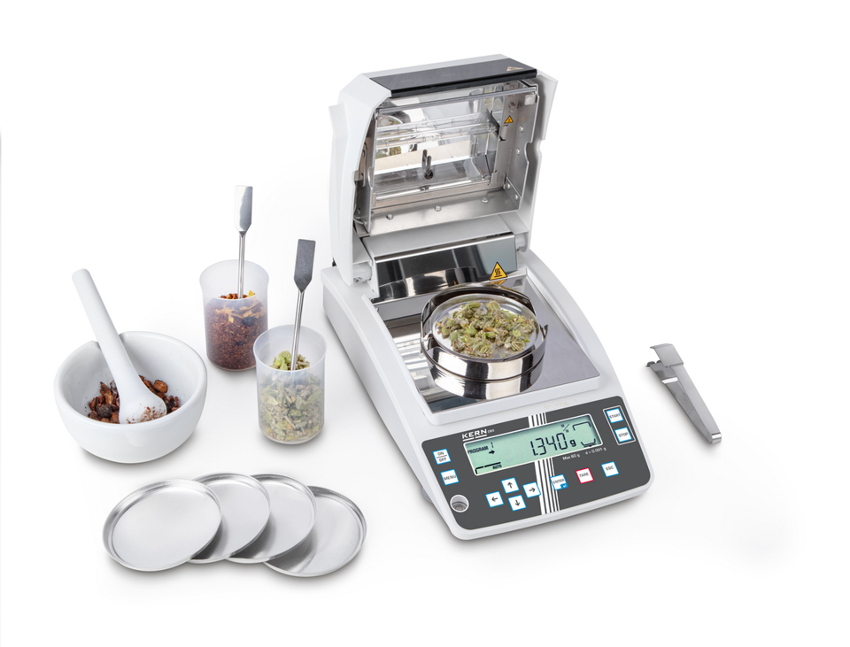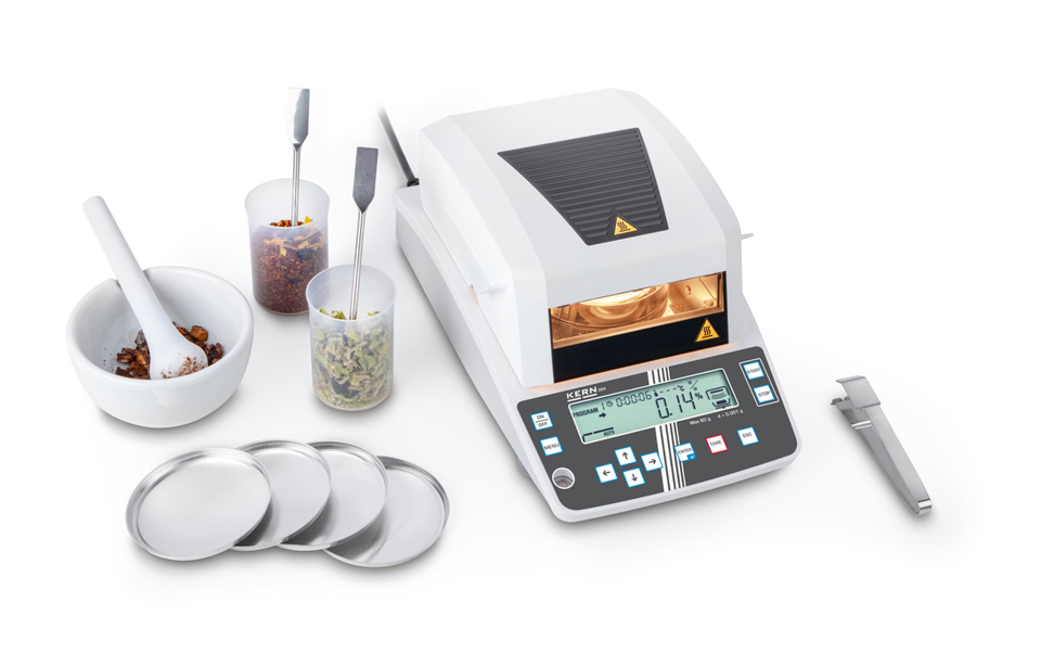 Vægten er særligt velegnet til prøver med lavt fugtindhold, fx plastgranulat, pulver, kemiske og farmaceutiske produkter, hvor præcise målinger er afgørende for kvalitetssikringen.