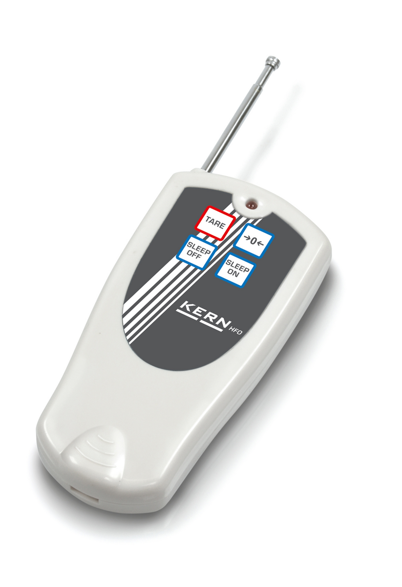 - Radiofjernbetjening (standard), rækkevidde op til 20 m, alle funktioner (undtagen ON/OFF) kan betjenes. Mål: 48×10×95 mm. Inkl. batteri (12 V, type 23A)