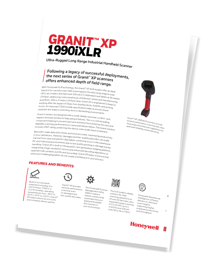 Der Granit™ XP 1990iXLR wurde entwickelt, um erstklassige Scanleistung und umfassendes Scannen über große Distanzen zu bieten, um die Effizienz und Zuverlässigkeit in missionkritischen Anwendungen zu steigern. Seine hohe Haltbarkeit trägt zu niedrigen Gesamtbetriebskosten (TCO) bei.
