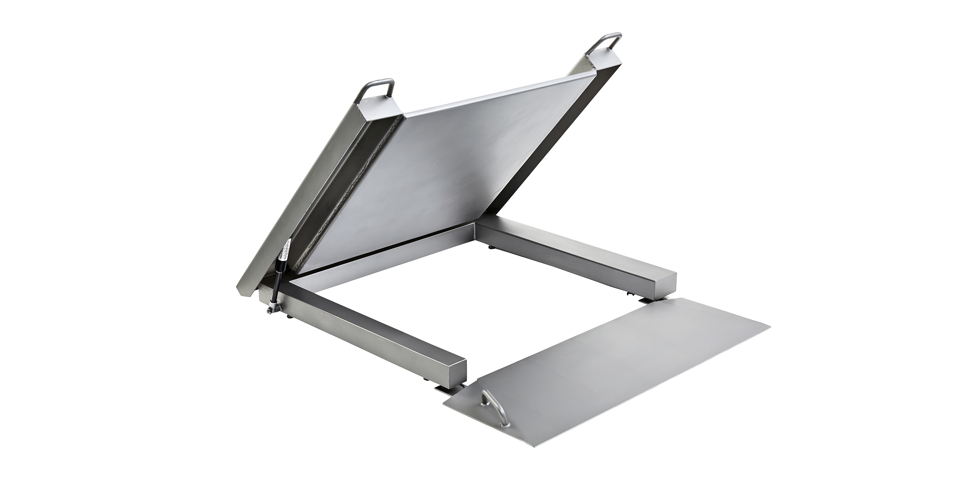 Den kompakte vekten krever lite plass og er bare 35 mm høy. Dette gjør det enkelt å få en tung vemagvogn opp på vekten ved hjelp av en liten rampe.