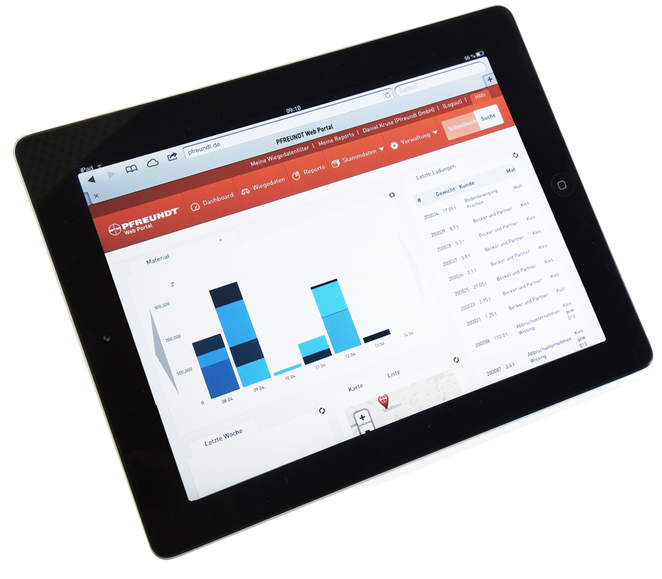 Pfreundt Webportal gir deg enkel tilgang til veiedataene dine, hvor og når du måtte ønske det. Uansett om du er på kontoret og arbeider på PC-en din eller sjekker smarttelefonen eller nettbrettet ditt, når du er på farten. Dine data er tilgjengelige for deg 24 timer i døgnet, 7 dager i uken.
