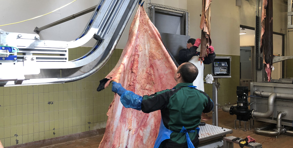 - Automatiskt vägningssystem i transportbandet ger snabb transport av hudar för kylning