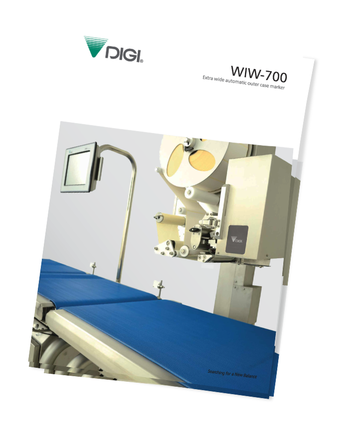 Digi WIW-700 är ett automatiskt heavy-duty system för dynamisk vägning och etikettering av stora produkter på upp till 60 kg samt dimensioner L600 mm och B400 mm.