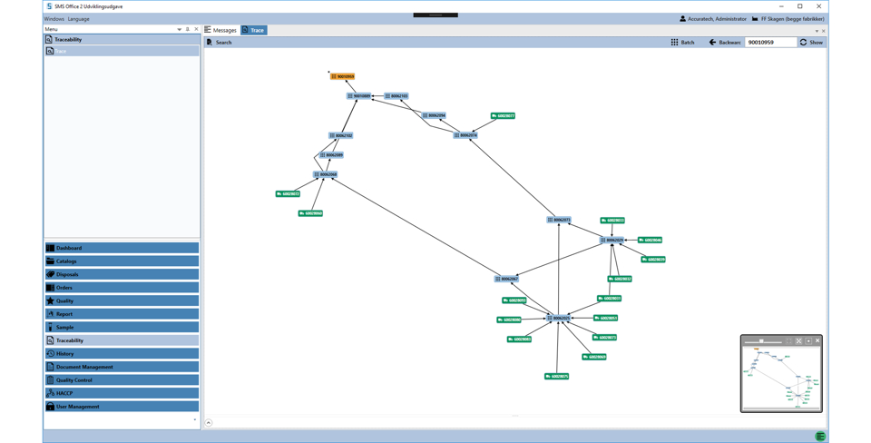 Full Traceability-modulen kan fånga all slags spårbar data på anläggningen. Baserat på produktionsdatan, tar det bara några sekunder att dokumentera full spårbarhet, utföra mängdberäkningar och hittar relevanta artiklar i lager.