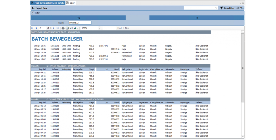 ScanPlant NG Full Traceability kan visa den efterfrågade informationen i realtid, vilken kan presenteras som historiska data i en kundspecifik process genom ScanPlant NG Office. Genom att införliva en spårbarhetssökning, sparar du tid, eftersom dokumentationen kan genereras och visas inom några sekunder.