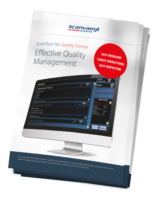 Modulen ScanPlant Quality hanterar kvalitetsregistreringar - inklusive interninspektioner och egenkontroller - för all slags kvalitets- och processdata, såväl som avvikelser, korrigerande åtgärder och rotorsaker.