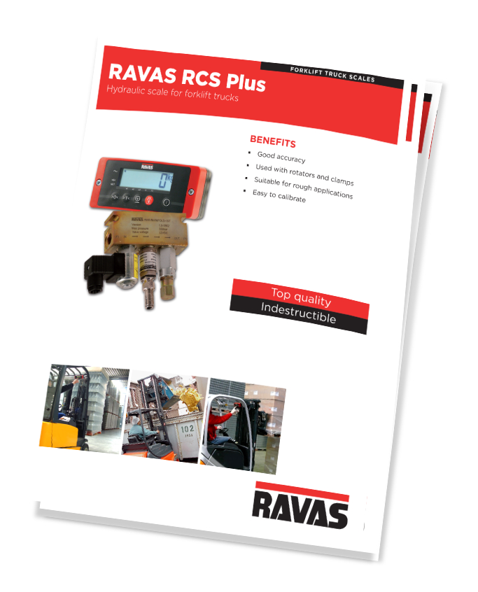 RCS-PLUS väger genom att mäta trycket i gaffeltruckens hydrauliska lyftsystem, via en oljetryckssensor på ventilblocket. Ju tyngre last, desto högre oljetemperatur och tryck. Mjukvaran översätter båda mätningarna till en viktindikering av lasten på gafflarna.